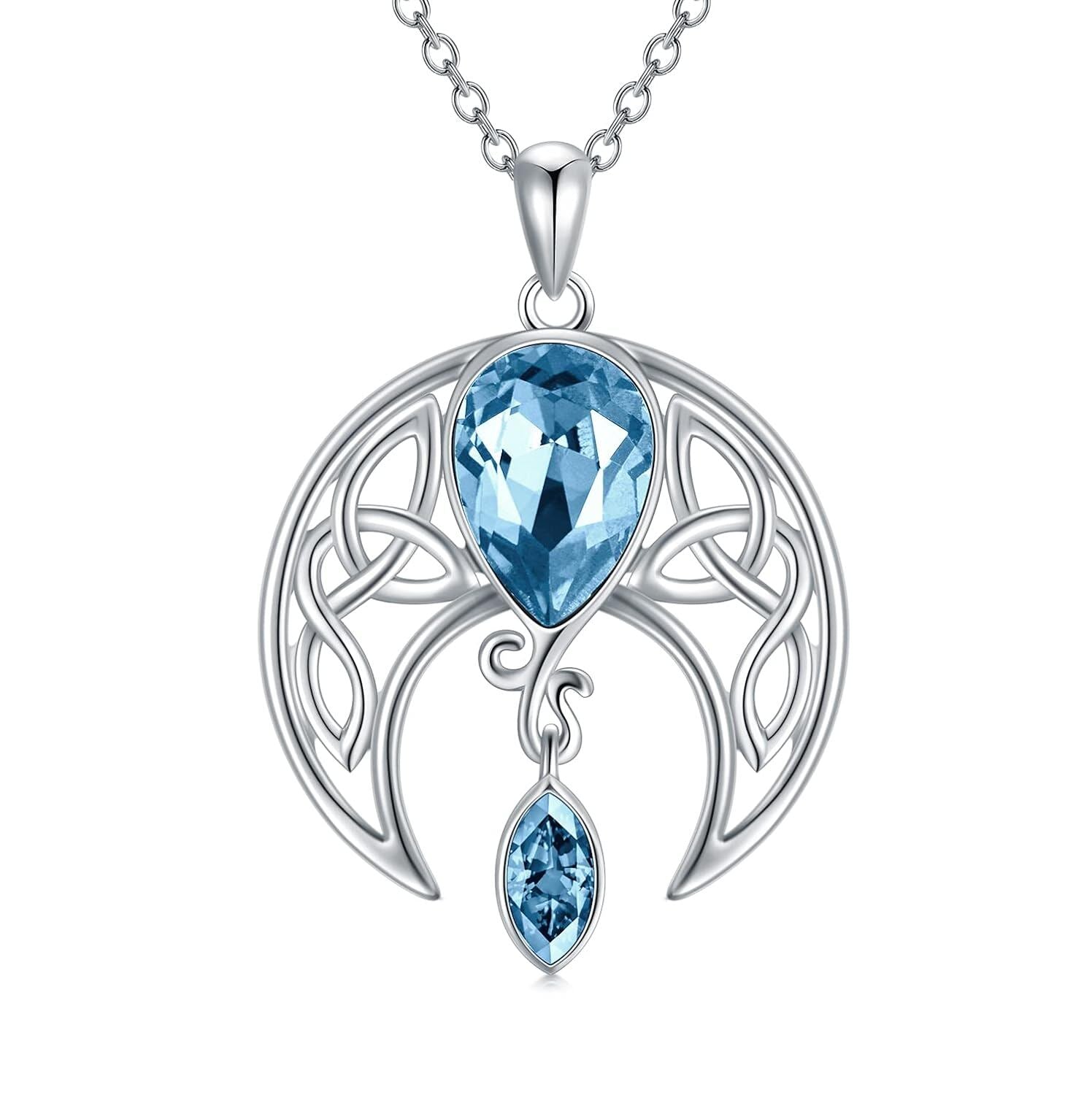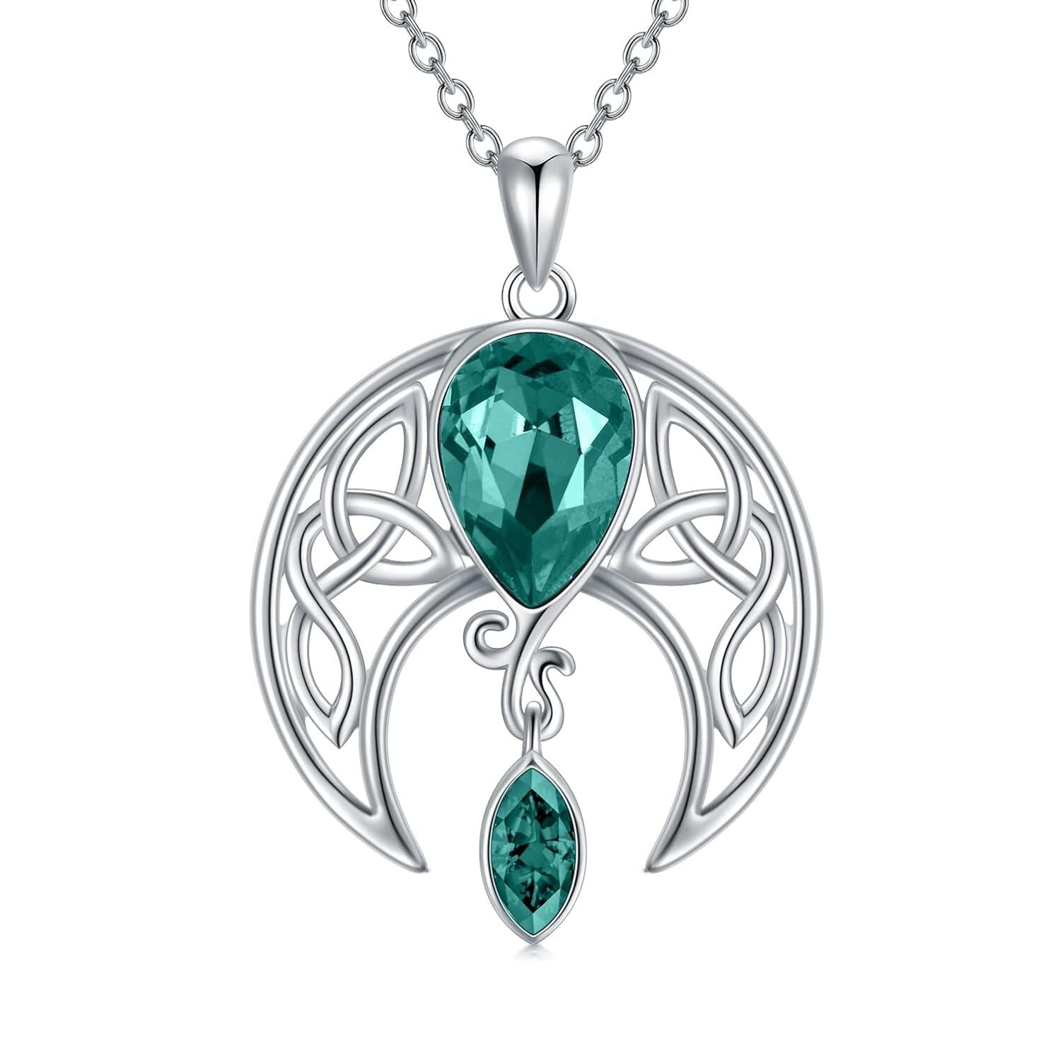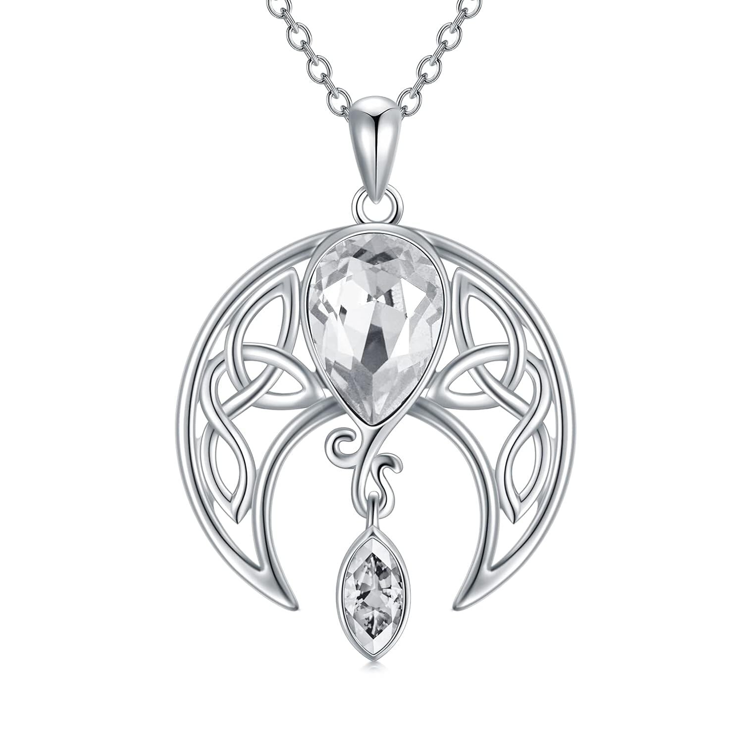 925 Sterling Silver Birthstone Crystal Celtic Moon Goddess Pendant